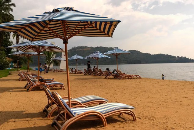 Upon arrival at Lake Kivu, you’ll check into the Kivu Hilltop View Hotel & Resort, where you can make yourself comfortable. The day concludes with a delightful visit to Lake Kivu, where
